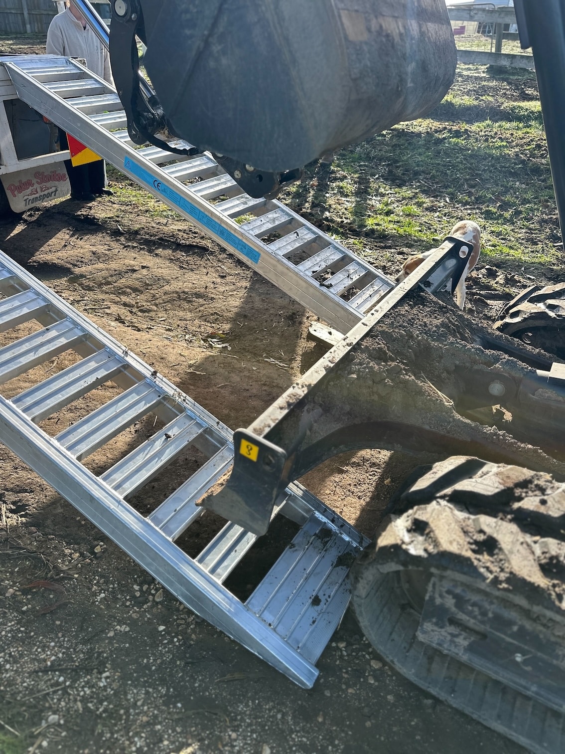 “Even though the excavator has rubber tracks which makes it a bit more stable for loading, you still have to take a lot of care in ensuring that the ramps are positioned with care.